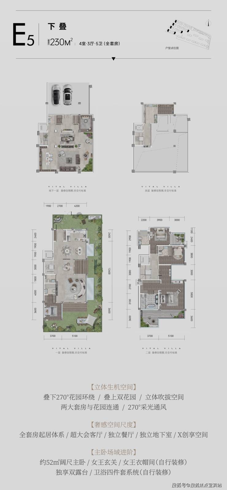 独立建筑单元、独立地下入户、独立1F花园入户、独立电梯,为每一户创造独栋感的生活体验。