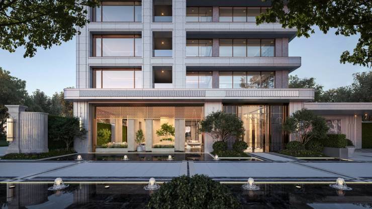 项目全奢级石材干挂,于水岸再次美学激荡,塑造建筑雕塑质感与稳固挺拔的形象,对话城市理想与高度