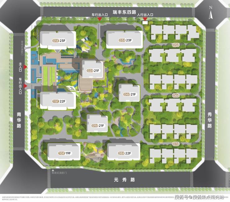 社区内规划有儿童游乐区、成人健身区、老年活动中心、下沉式庭院、环形跑道等,同时打造约 8000㎡中心景观花园,植被覆盖率高,兼具观赏性与实用性。