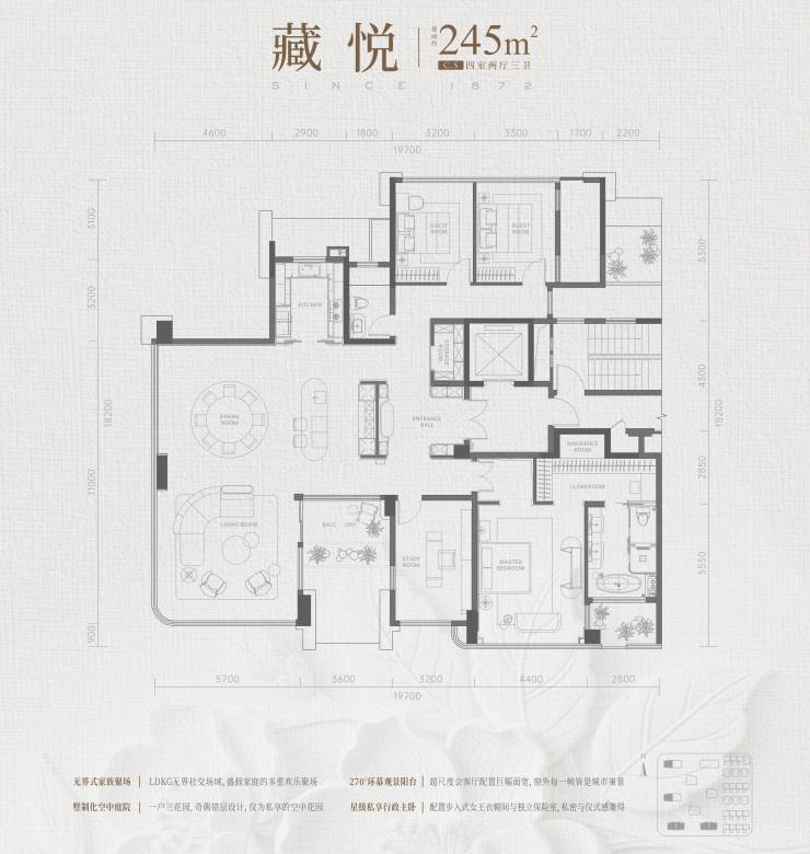 错层式花园设计,打造一户三院的空中花园享受,利用三重归家动线+独立式保姆空间,形成动静分离式家庭空间规划,重现别墅的尊崇感;仪式感西厨岛台+空中花园餐厅,超12人家庭宴会空间,从工作时刻到亲子时光,多元化生活设计,赋予生活理想格局