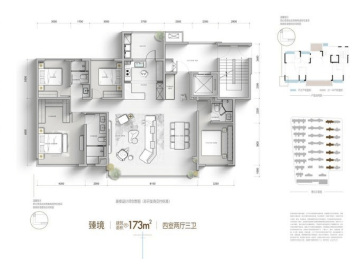 建面约173平套四