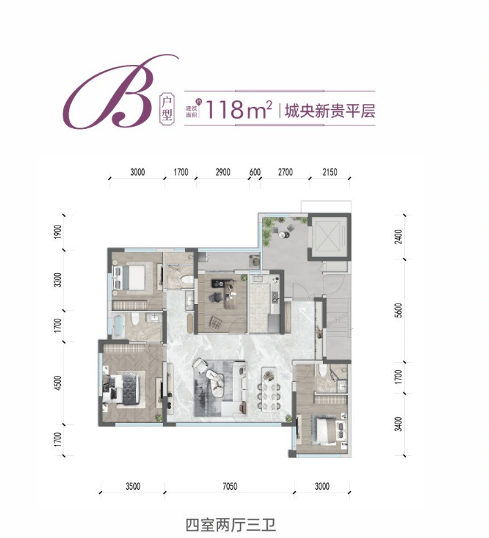 建面约118㎡城央新贵平层