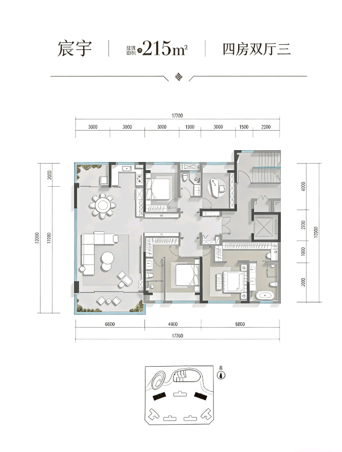 建面约215平套四