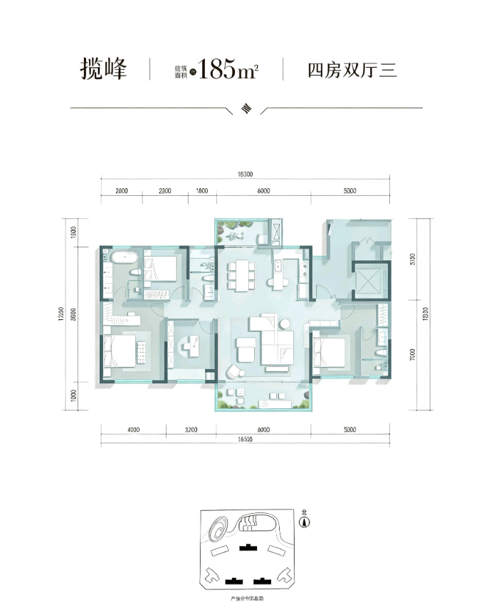 建面约185平套四